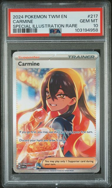 $1.99Unit price /UnavailableCARMINE SPECIAL ILLUSTRATION RARE 2024 POKEMON TWM EN-TWILIGHT MASQUERADE PSA GEM MT 10
