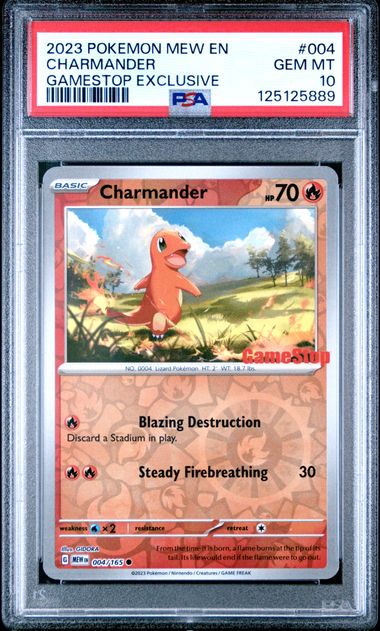 $99.99Unit price /UnavailableCHARMANDER GAMESTOP EXCLUSIVE 2023 POKEMON MEW EN-151 PSA GEM MT 10