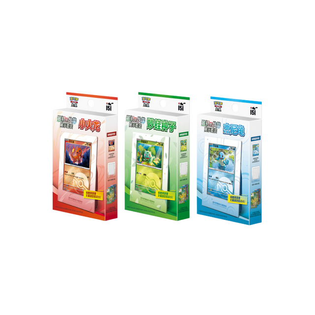 Celebrate your very first Simplified Chinese Pokémon partner with the Collect 151 – First Partner Display Set, available in three versions: Bulbasaur, Charmander, and Squirtle.